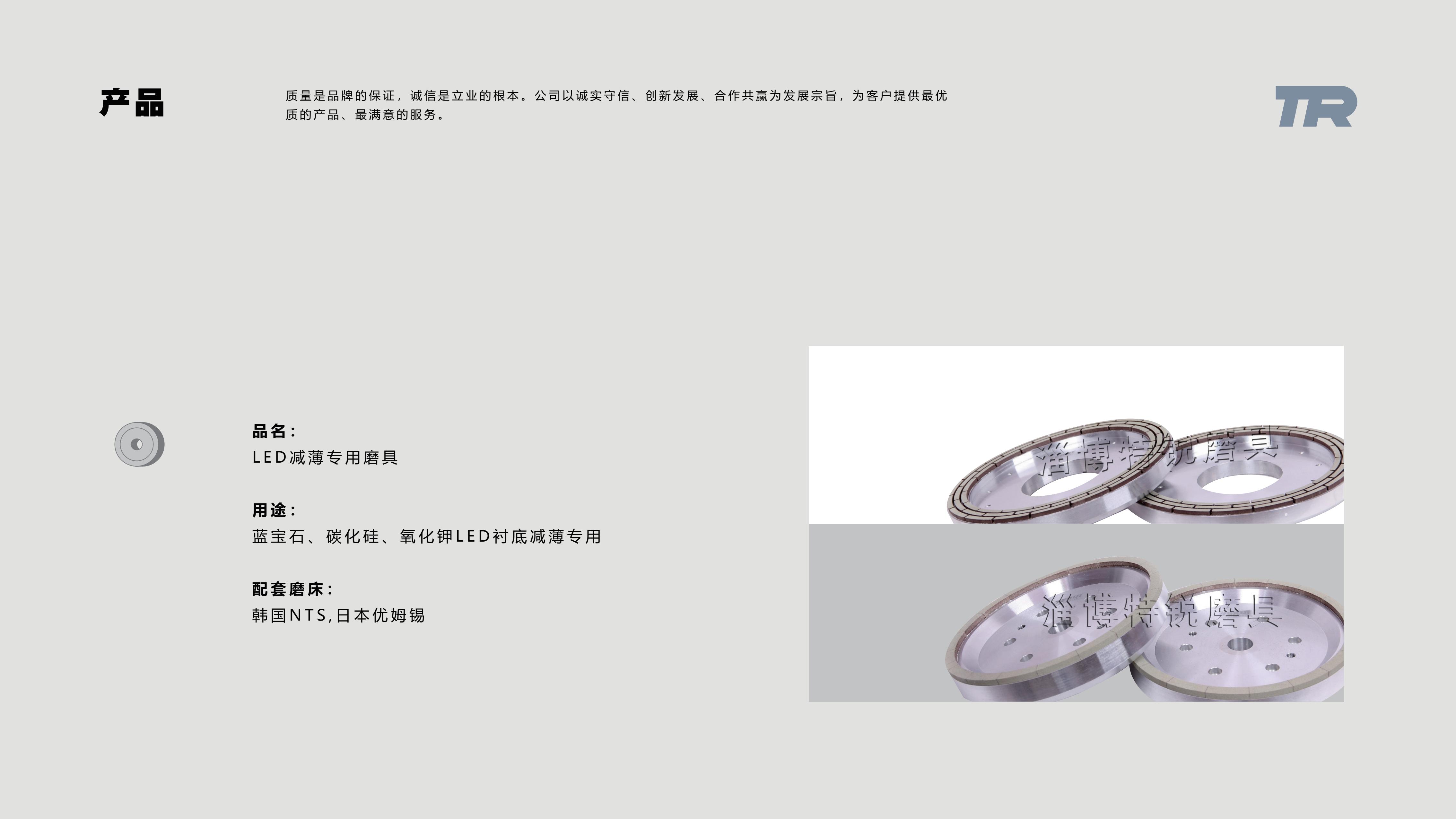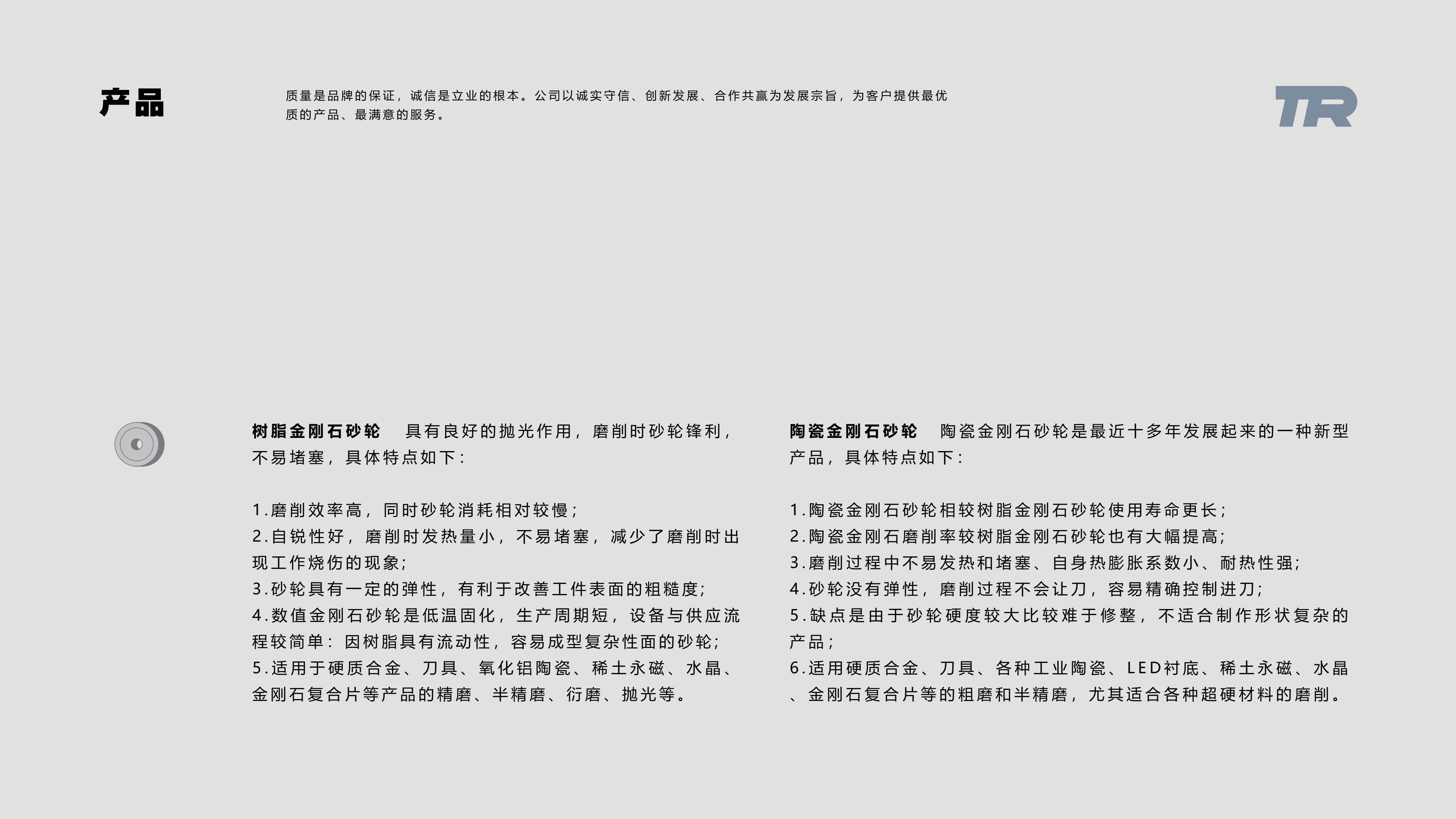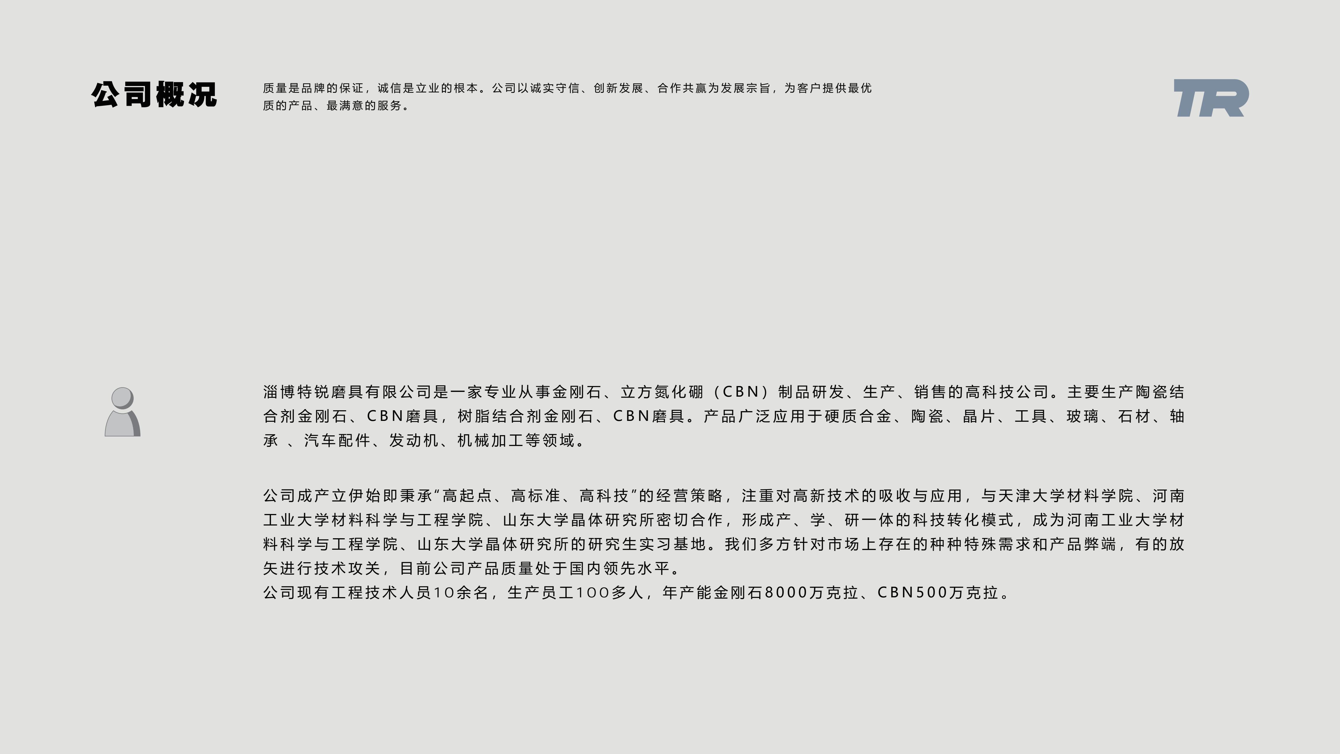 本页面是淄博特瑞磨具有限公司宣传手册,该手册包含淄博特锐磨具有限公司的公司简介、生产工艺、产品、质量控制、市场情况、成功案例、企业文化等信息,可以帮助您更好的了解淄博特锐磨具有限公司的情况。